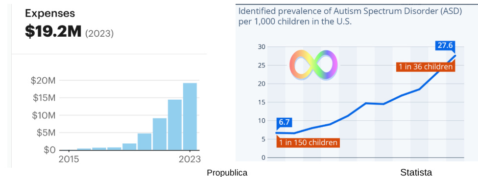 Actually, by RFK Jr.’s standards it may well be true. Here’s the evidence. Rising spending by Children’s Health Defense is clearly and undeniably associated with rising rates of autism diagnosis:
